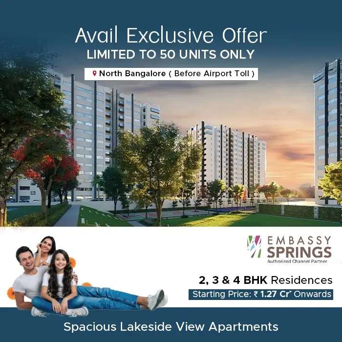 Embassy Greenshore is an upcoming luxury residential development soon to be launched within the iconic Embassy Springs township at Devanahalli, Bangalore. Spanning 14 acres, this project will feature 800 contemporary apartments crafted to meet the lifestyle aspirations of modern urban families. As part of Embassy Springs—Bengaluru’s largest master-planned township spread over 288 acres—Greenshore offers a truly holistic living experience complemented by world-class infrastructure and serene surroundings.